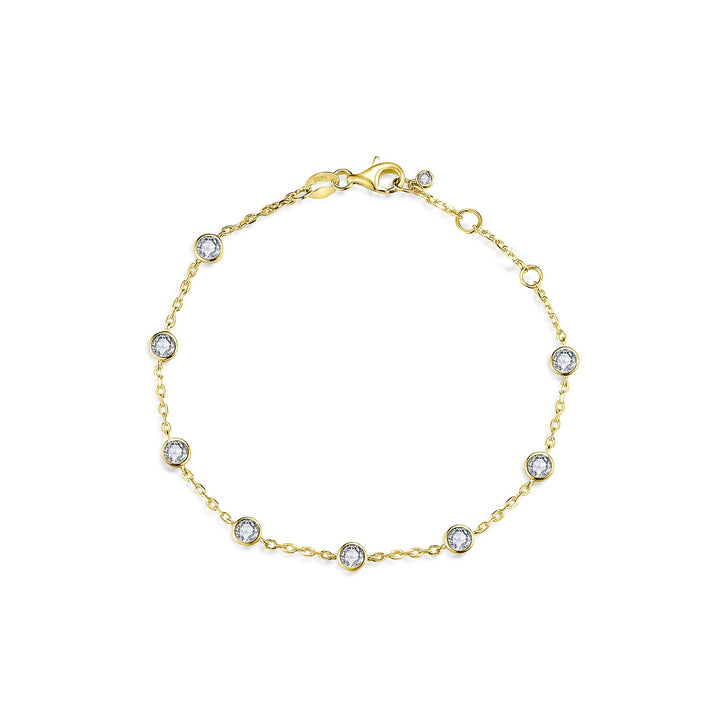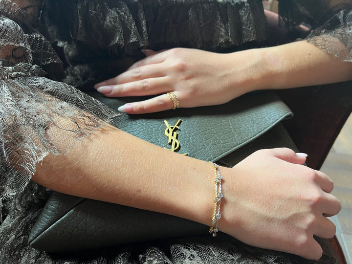 Dette elegante Sofie-armbåndet i gull kombinerer enkelt design med vakre stener som gir et rolig og sofistikert uttrykk. Smykket er lett å kombinere med andre accessories, men står også fint alene som et diskret og stilfullt tilbehør. Perfekt som en gjennomtenkt gave som uttrykker både skjønnhet og tidløshet.
